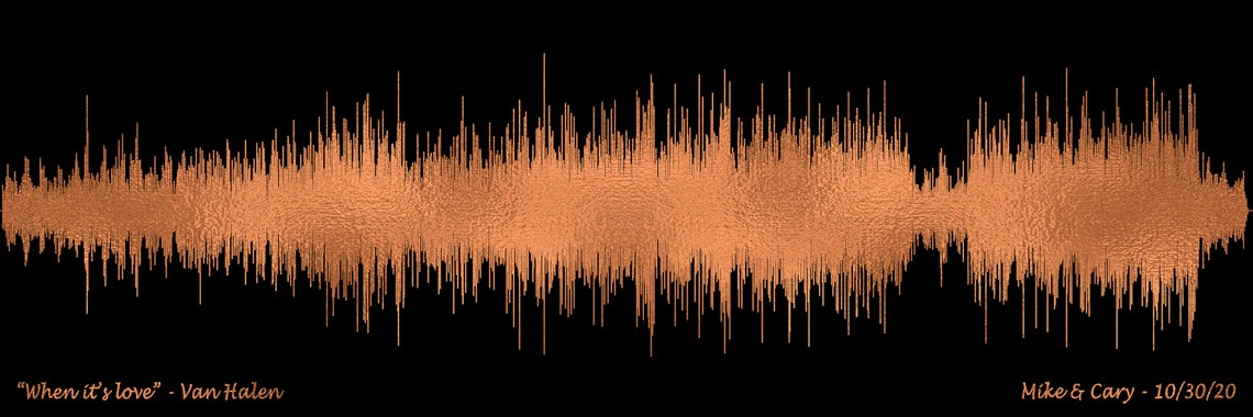 A unique and memorable gift, a sound wave from your or your loved one's favorite song. A Song Wave Print can be your wedding song, your first dance song, or a song that you have memories with. No Gift is more personalized than your special song turned into a Sound Wave Art Print.