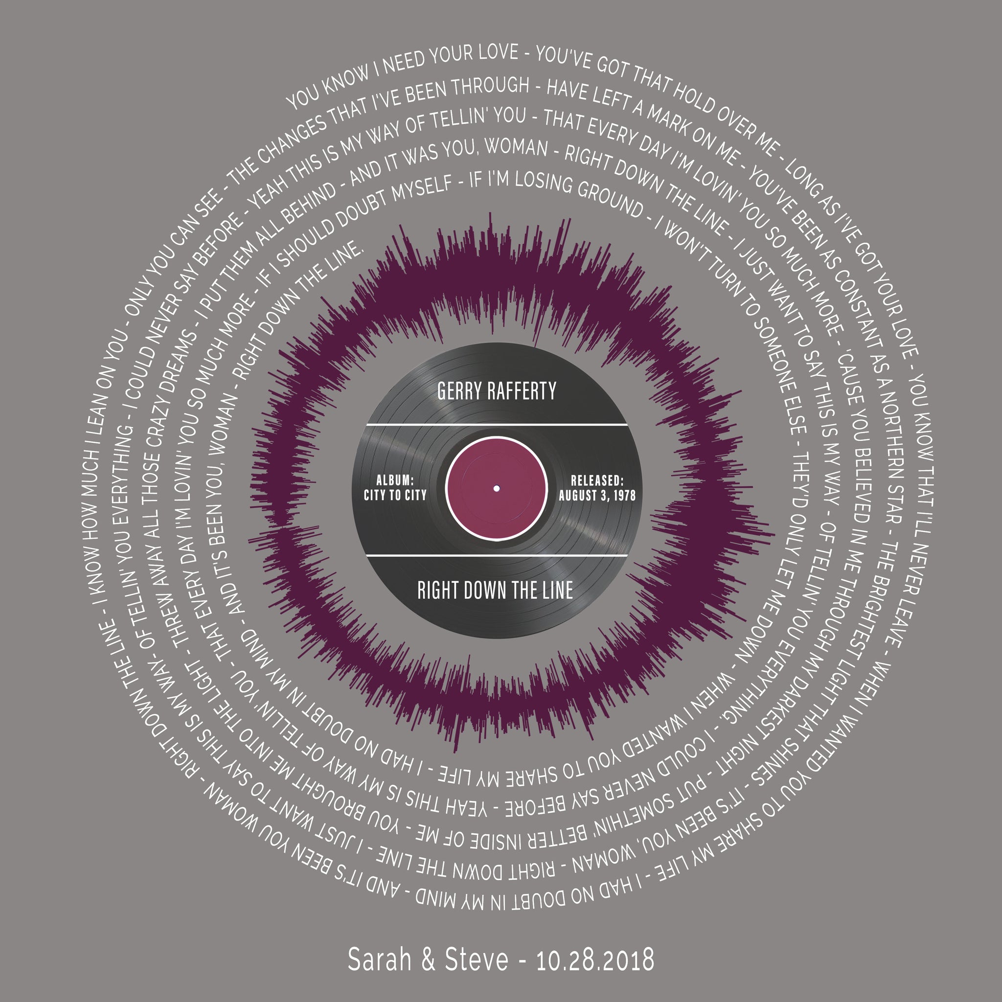 Custom Song Lyrics Wall Art from your loved one's favorite song, or a song that you both have great memories with or even from your first dance song. This is a unique, memorable and meaningful gift for any occasion, a gift that he will admire for years to come.