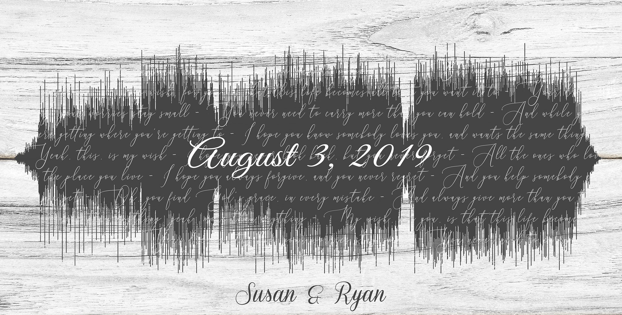 2nd Cotton Anniversary, Canvas Anniversary Gift - Wedding Song Lyrics Canvas - 2 Year Anniversary Gift. We make custom made sound wave print canvas from your wedding's first dance song, with the song lyrics inside the sound wave, with a white oak background. You can also have your wedding vows printed inside the sound wave instead of the song lyrics.