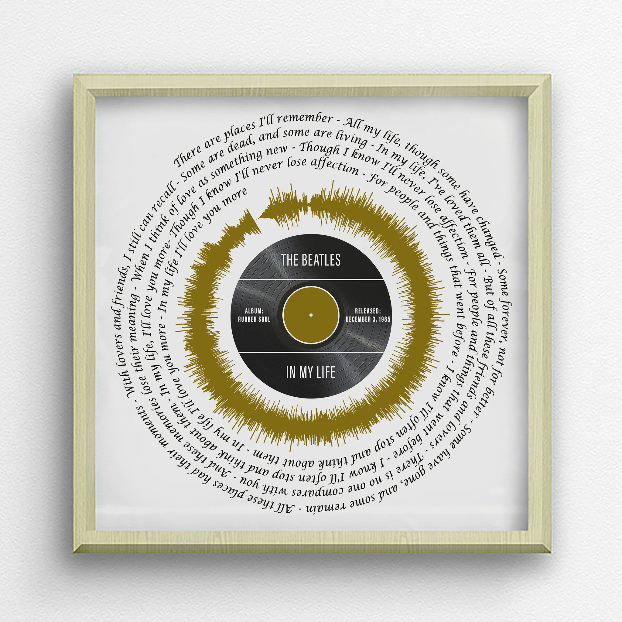 Custom Song Wave Wall Art from The Beatles "In My Life" song lyrics. A Unique and meaningful Valentine's Day gift for your husband, wife or for your other loved ones, a great gift for any special occasion, a gift that they will admire for years to come.