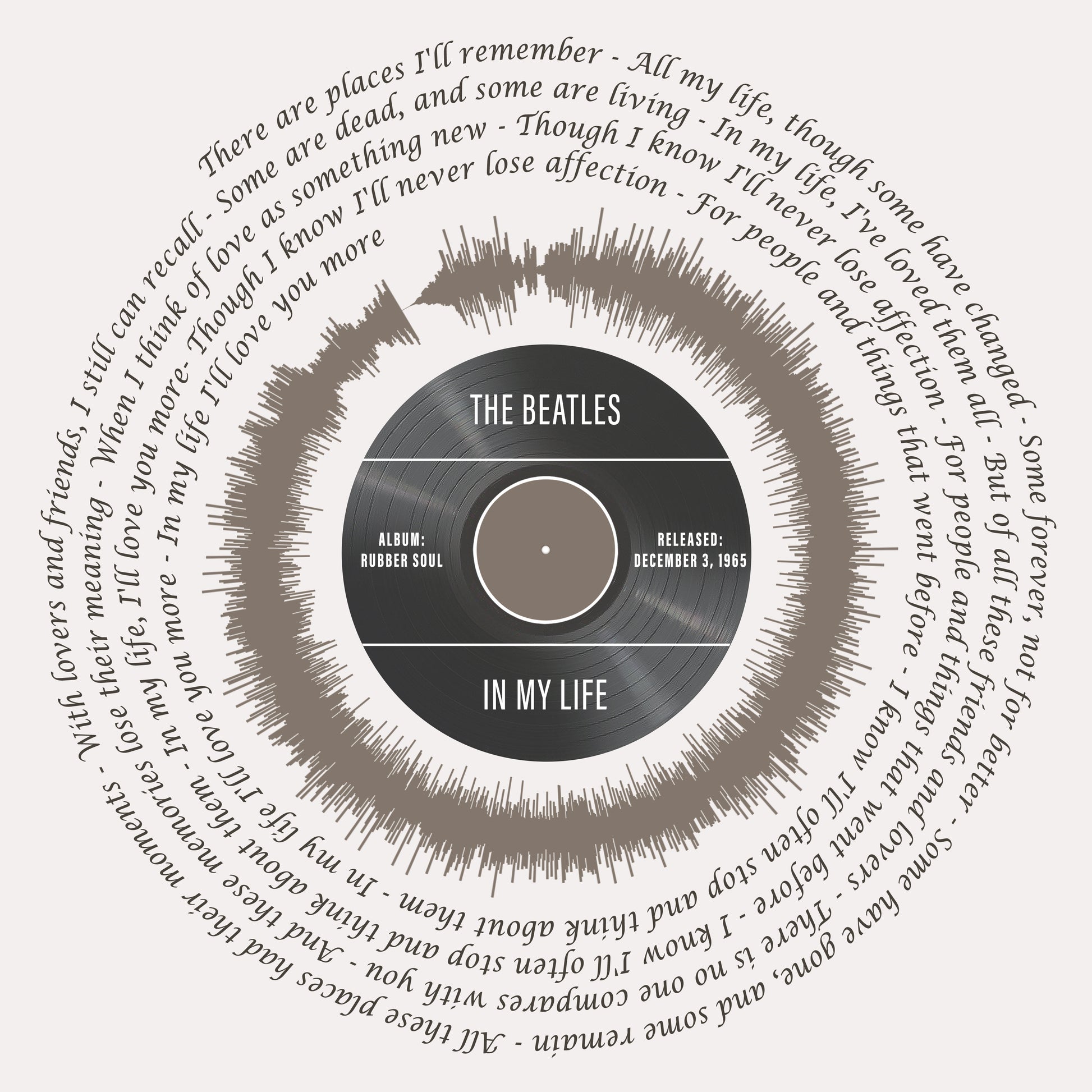 Beatles In My Life Wall Art | Beatles Song Lyrics Soundwave Art | Song Lyrics Wall Art From The Beatles Songs