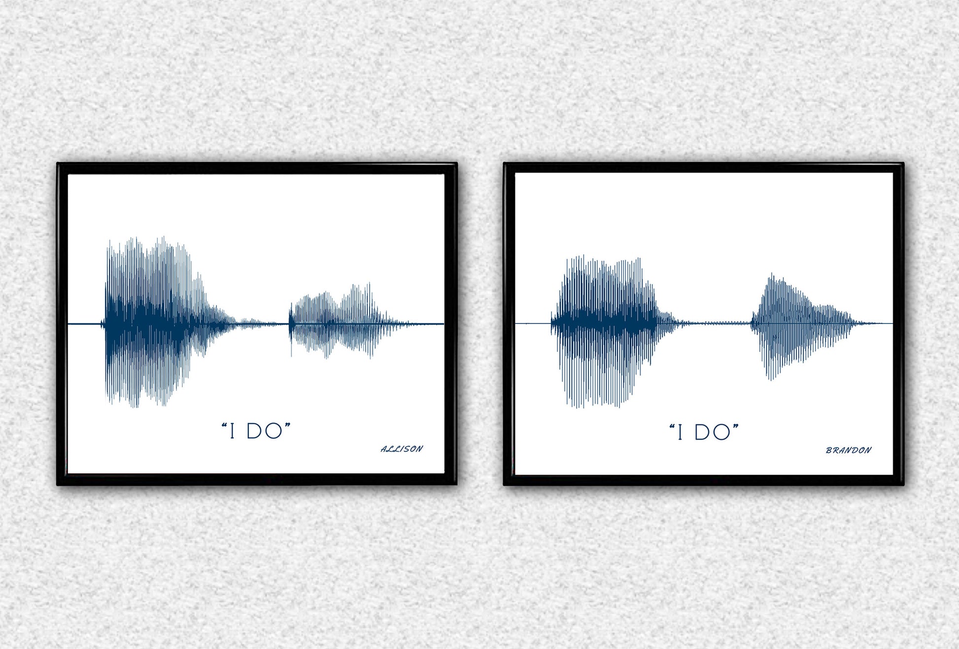A unique personalized gift. Custom Sound Wave Print of Your Vows, I Dos, or any other message for your loved one. We turn your voice recording into a sound wave art print, a great gift for your wedding anniversary, or Valentine's Day.