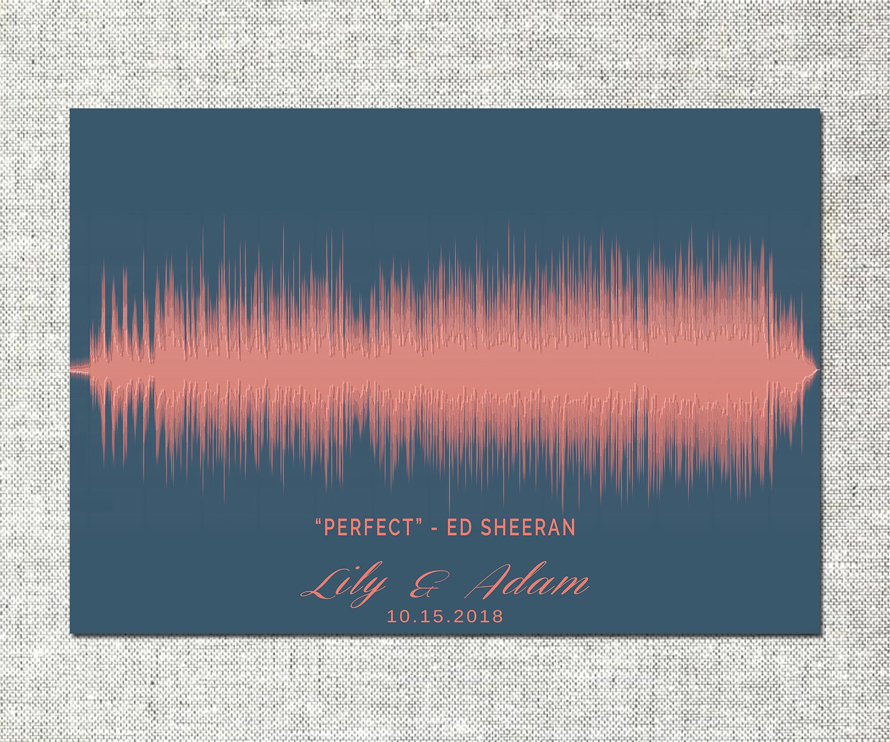 Turn your wedding song, first dance, or your favorite song into a beautiful Sound Wave Art. It’s the best gift for a special anniversary or a wedding gift. Send us the name of your wedding song or your first dance song and we will turn it into a piece of art that will bring back the memories of that special moment.