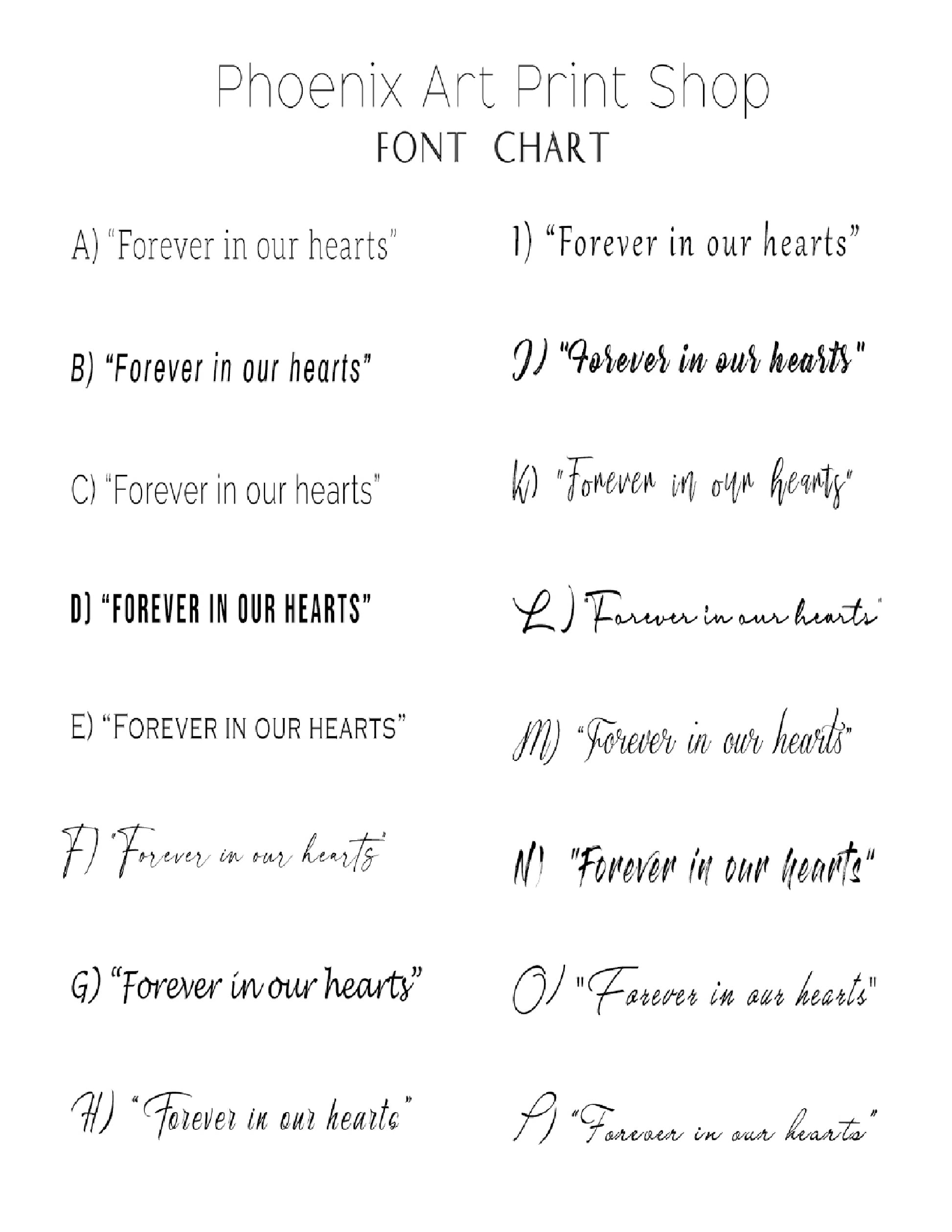 1: Your Preferred Font (See chart)