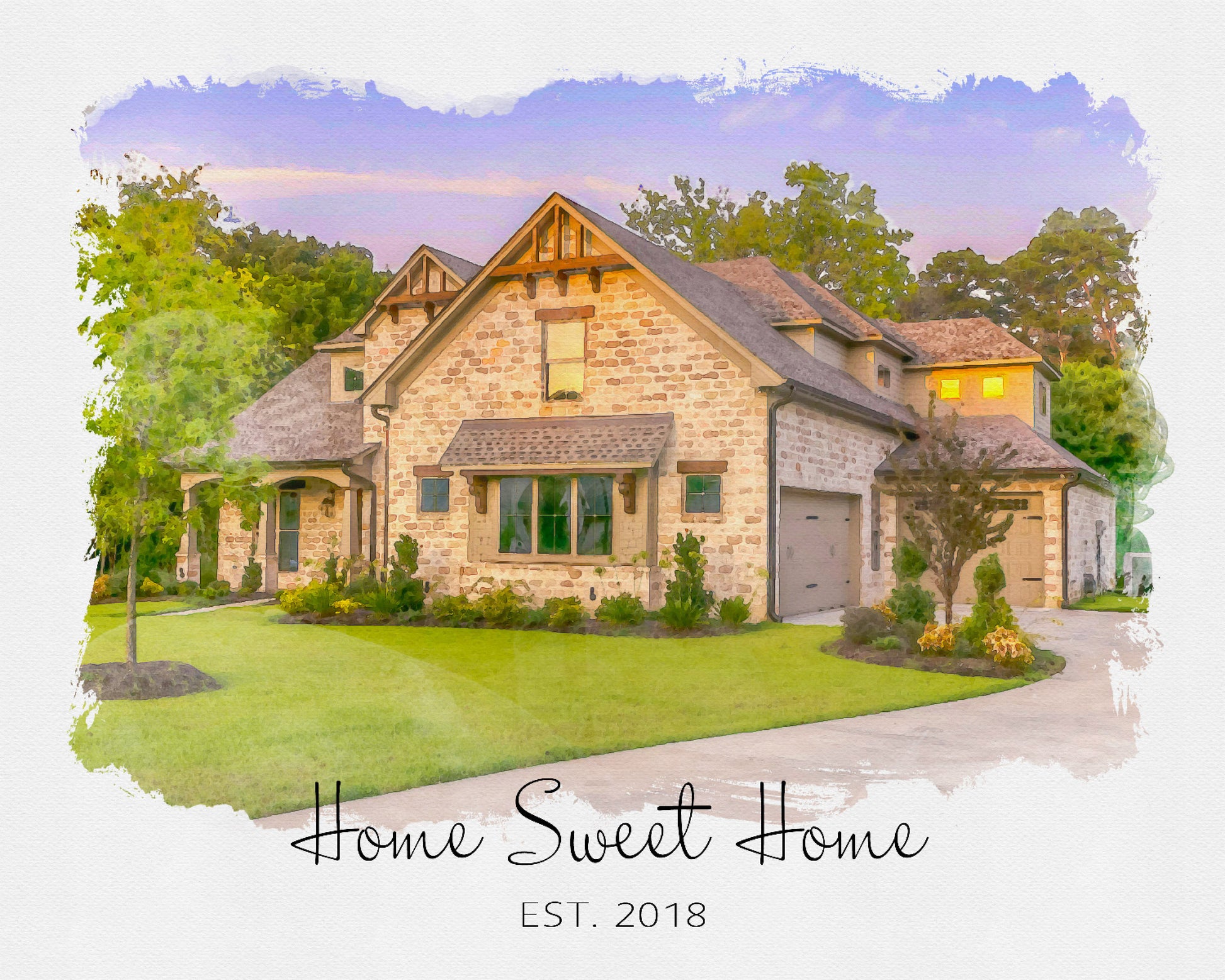 Simply send us a photo of your house, and we'll create a custom watercolor masterpiece that reflects its unique personality!